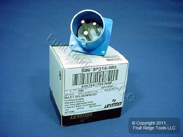 - Leviton Pin & Sleeve Splashproof Inlet Plug 16A 250V SP316B6