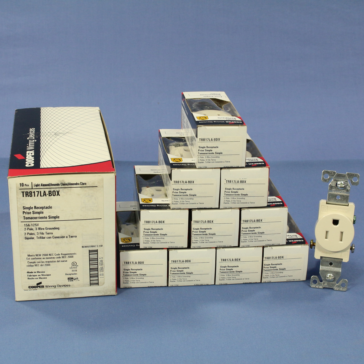 - 10 Cooper Light Almond TAMPER RESISTANT Commercial Single Receptacles NEMA 5-15R 15A TR817LA