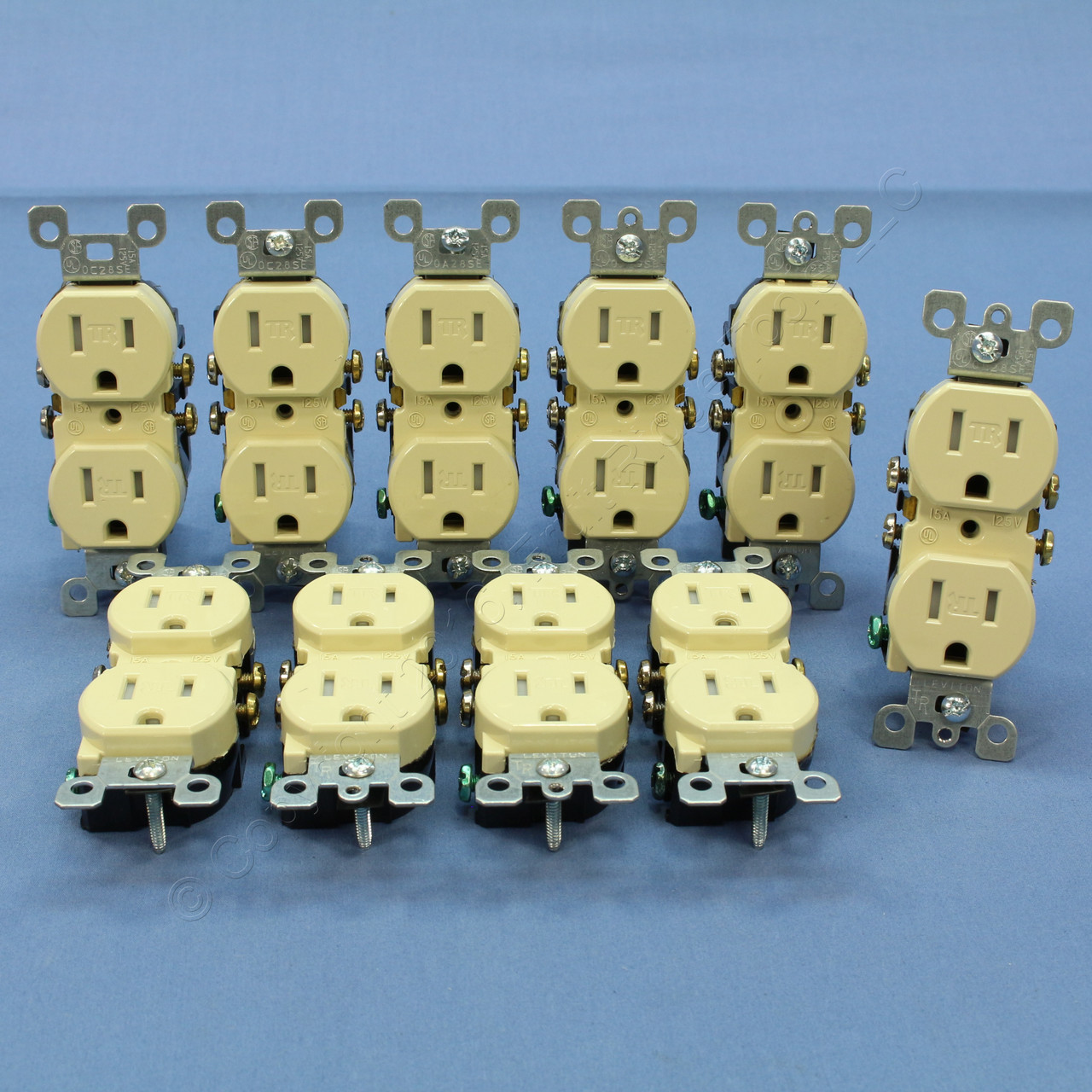 - 10 Leviton Ivory TAMPER RESISTANT Duplex Receptacle Outlets NEMA 5-15 15A T5320-I