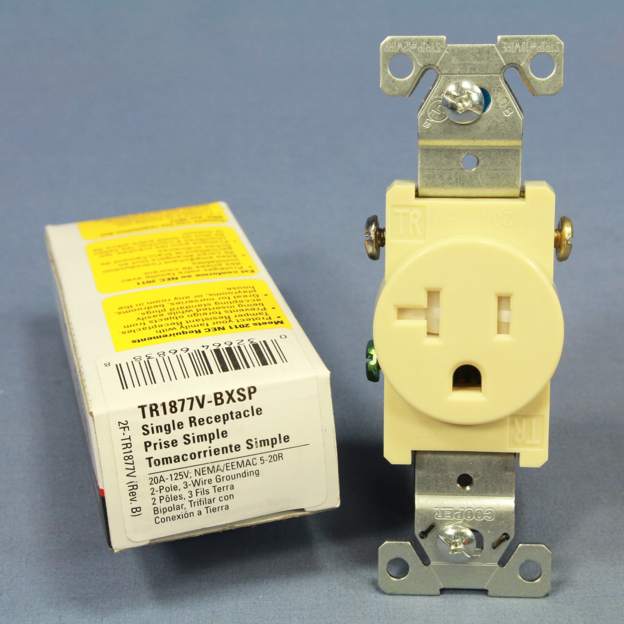 - Cooper Ivory TAMPER RESISTANT COMMERCIAL Single Outlet Receptacle NEMA 5-20R 20A 125V TR1877V-BXSP