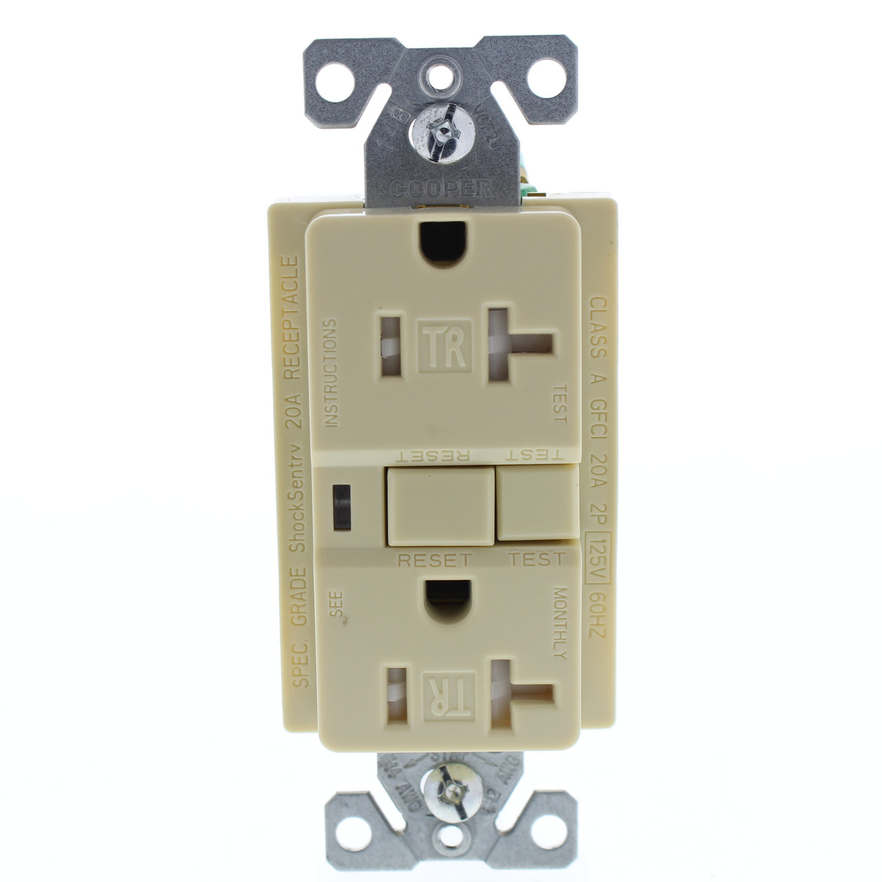 - Cooper Ivory Tamper Resistant Straight Blade GFCI GFI Receptacle with Quick-Connect Module NEMA 5-20 20A 125V TRVGF20VM