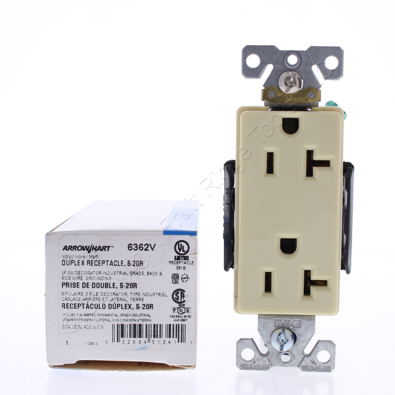 - Eaton Ivory Industrial Decorator Wing Receptacle Duplex Outlet 5-20R 20A 6362V