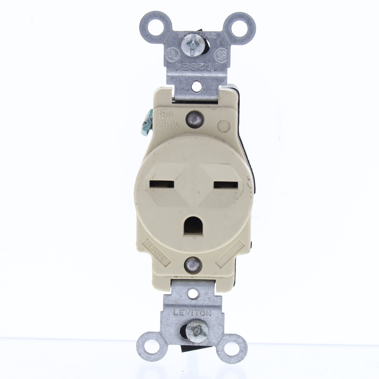 - Leviton Ivory Commercial Grade Straight Blade Single Outlet Receptacle NEMA 6-15R 15A 250V Bulk 5089-I