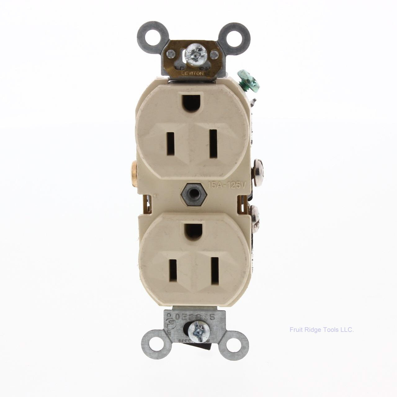 - Leviton Ivory Scratched Damaged COMMERCIAL Grade Duplex Receptacle Outlet Straight Blade Clamp NEMA 5-15R 15A BR15-I