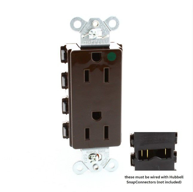 - Hubbell SNAP2172A Brown SnapConnect Hospital Grade Duplex Outlet Receptacle 15A