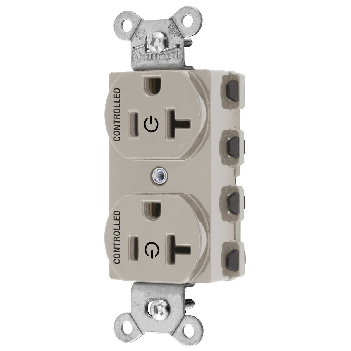 - Outlet is permanently marked "CONTROLLED" for use in a Hubbell LoadLogic or similar plug control system; typically found in commercial, retail, school, and hotel applications