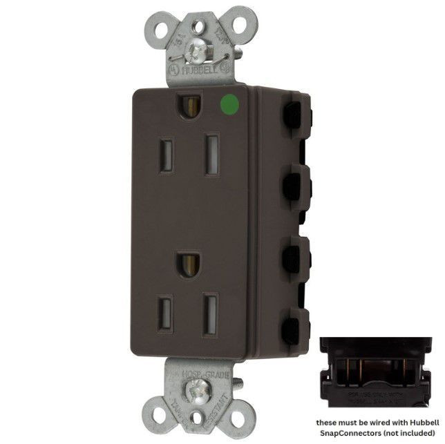 - Hubbell SNAP2172TRA Brown SnapConnect Hospital Grade Tamper Resistant Duplex Outlet Receptacle 15A
