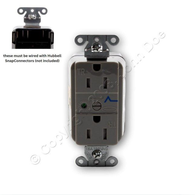- Hubbell SNAP5262GYS Gray SnapConnect SURGE Suppressor Outlet Tamper Resistant Receptacle 15A