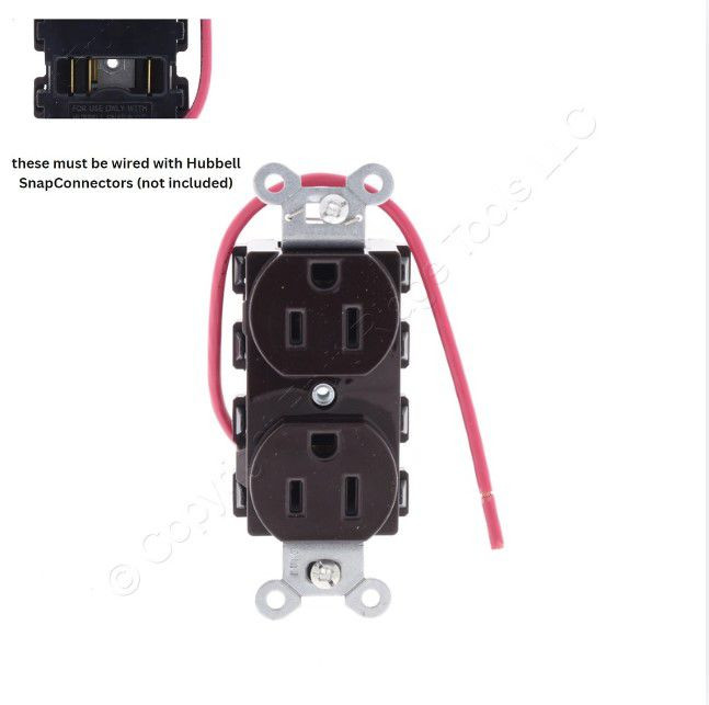 - Hubbell SNAP5262SC Brown SnapConnect Duplex Outlet Receptacle Split Circuit 15A