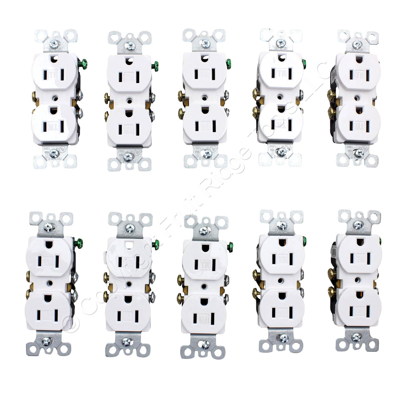 10 Eaton White Tamper Resistant Duplex Receptacle Outlets 5-15R 15A Black-Backing TR270W-E
