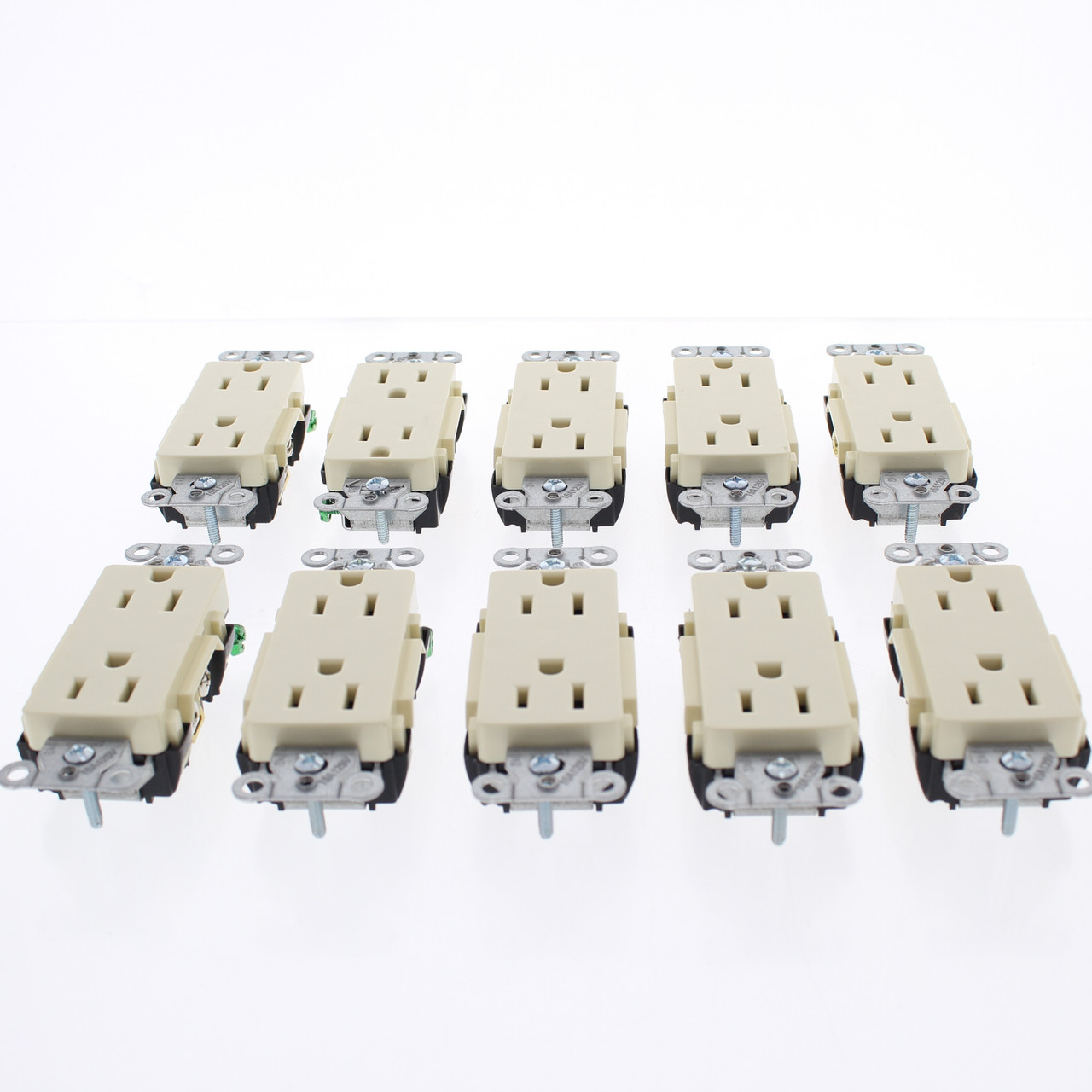 - 10 Hubbell Almond Decorator Receptacle Outlets 5-15R 15A Straight Commercial DRS15AL