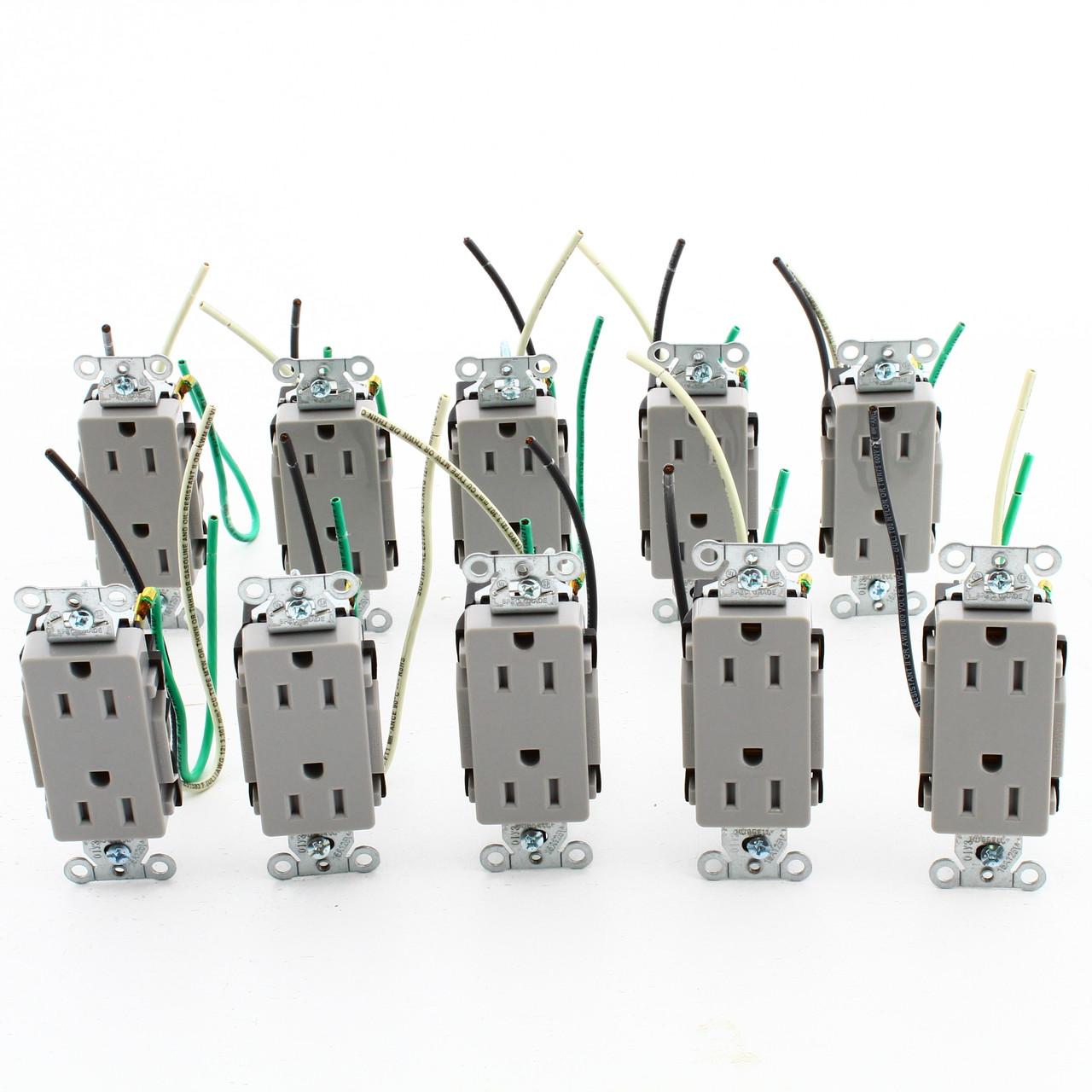 - 10 Hubbell Gray 15A TR Decorator Outlets 5-15 w/ 6.5" Stranded Leads DR15GRYTRP2