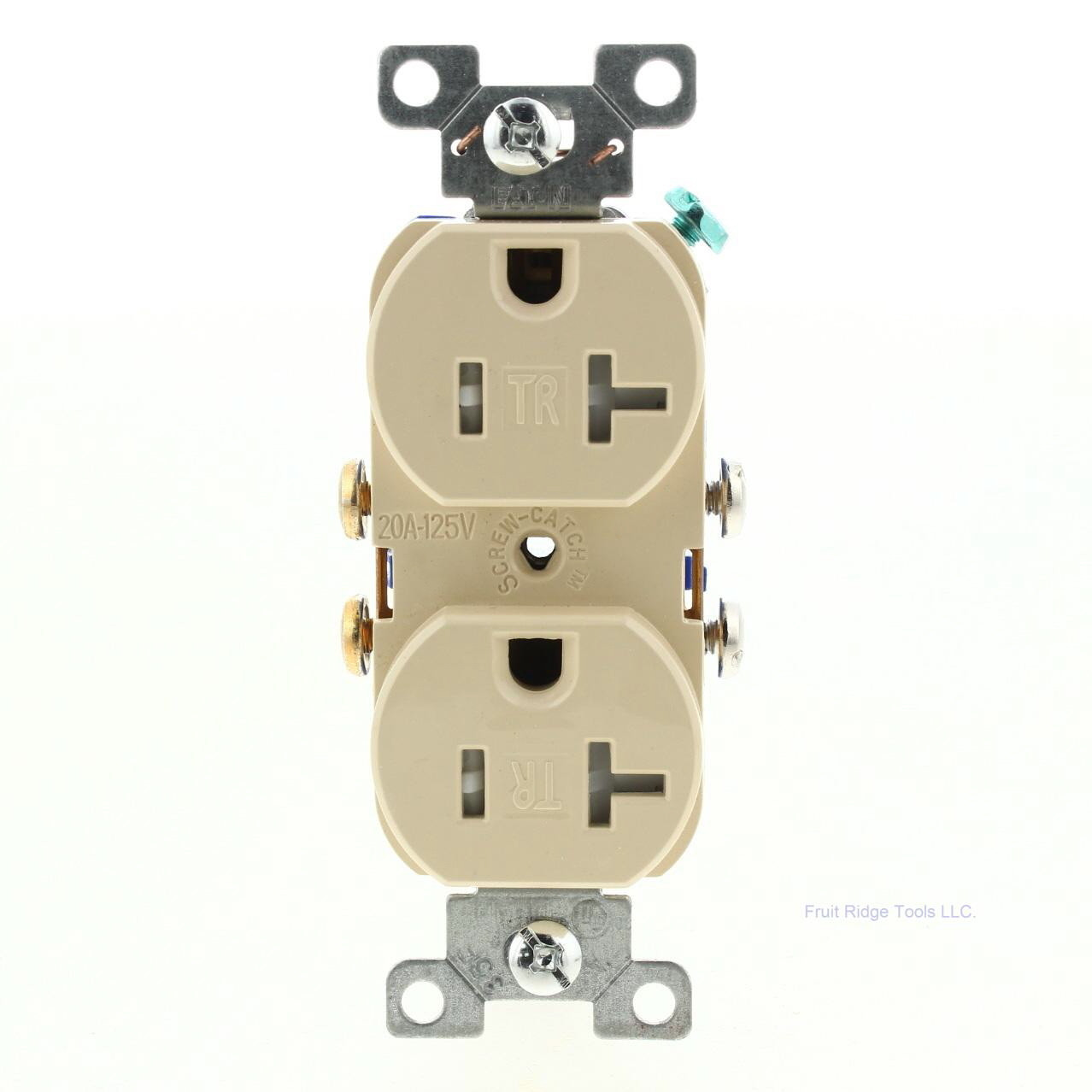 - Cooper Ivory Tamper Resistant Grounding Side Wired Duplex Receptacle 20A 125V NEMA 5-20R 2-Pole 3-Wire TR370V