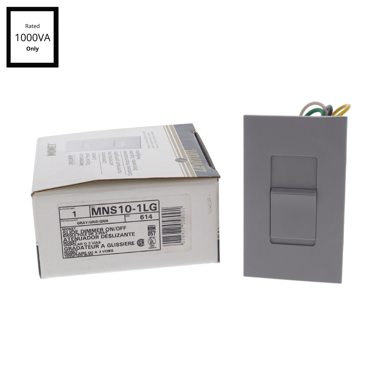 - Leviton Gray Scene Capable Monet ON/OFF Non-Dimming Switch Narrow Fin 1000VA Magnetic Low Voltage Fluorescent MNS10-1LG