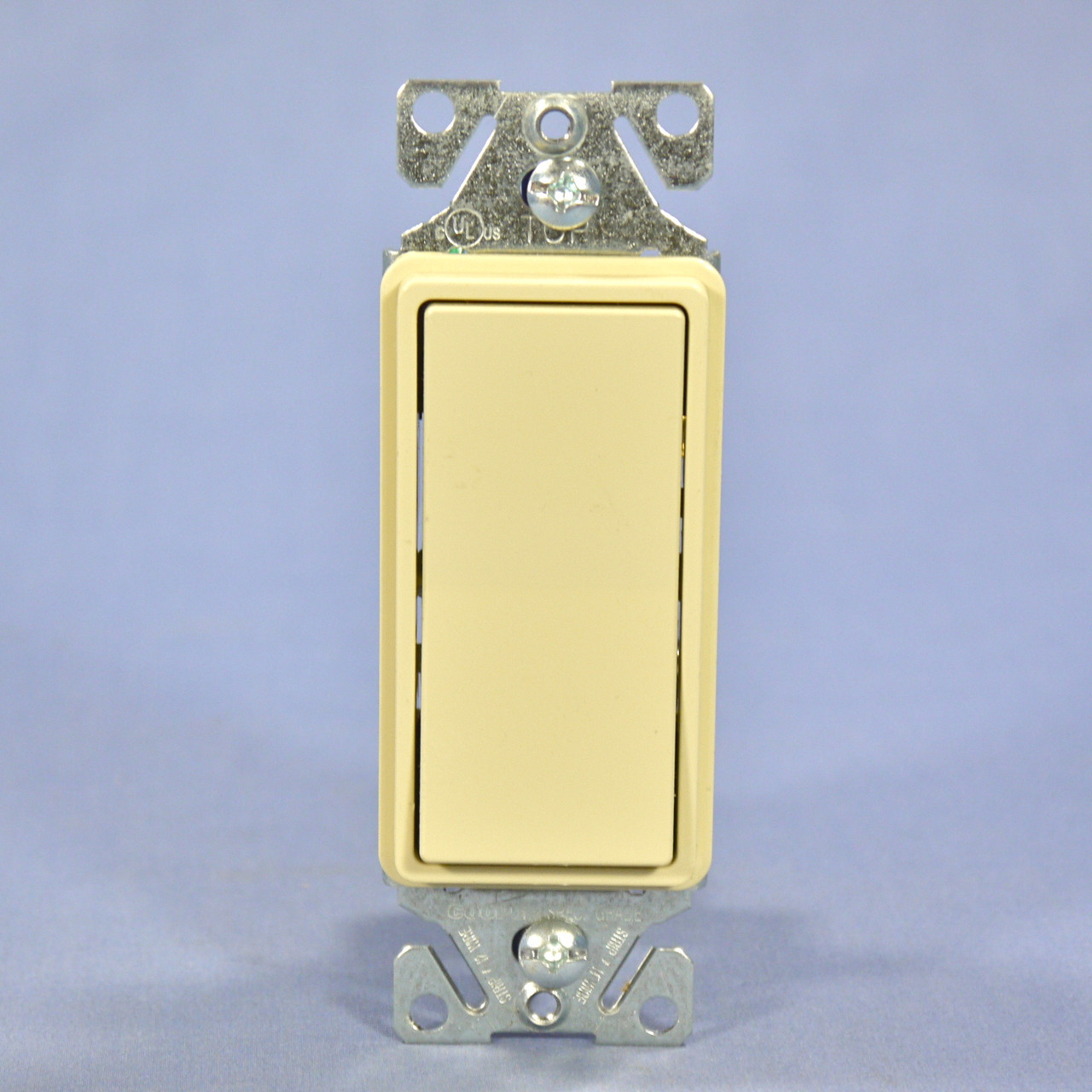 Cooper 7503V ivory Decorator rocker switch. They are Residential Grade, 3-way, grounding, Speedwire push-in, back and side wired, 15A 120/277VAC. Bulk packed loose with no individual packaging; as a result some may have minor dings. ITEM PICTURED IS FOR REFERENCE ONLY: SCRATCHES, SCUFFS, DINGS, and BLEMISHES WILL VARY FOR EACH INDIVIDUAL ITEM. Features include: