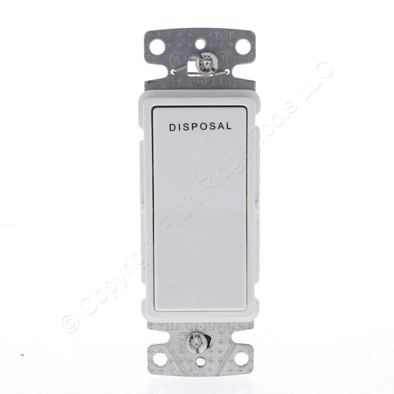 - Hubbell White "DISPOSAL" Switch Decorator Rocker 15A Single Pole Bulk RSD115DW