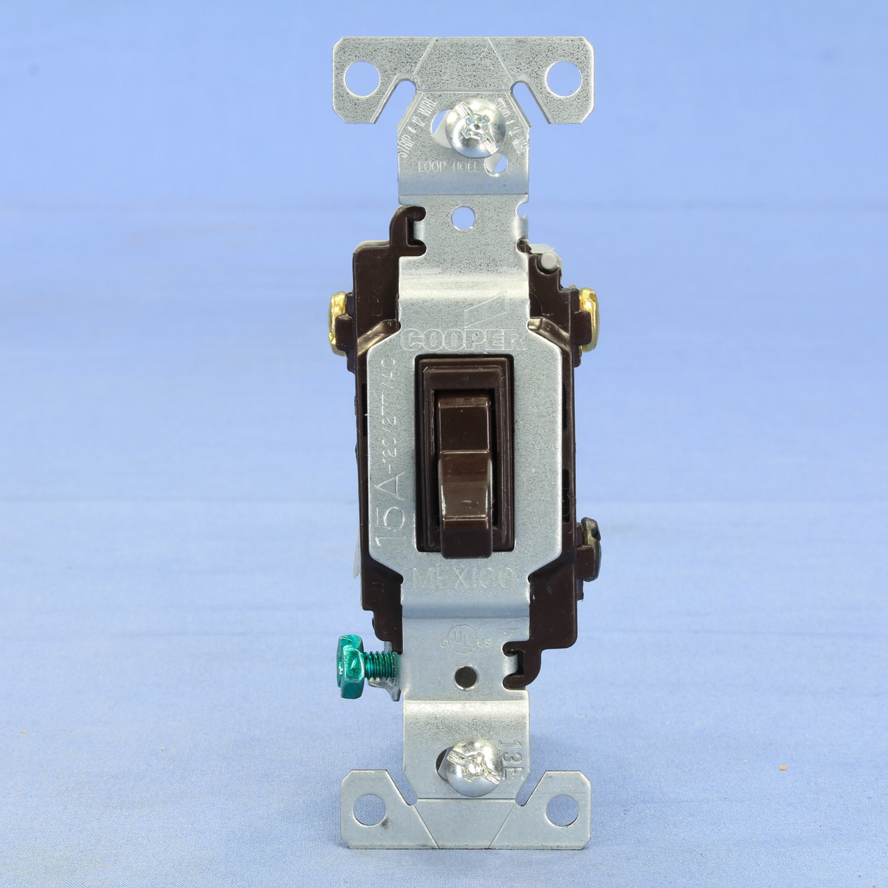 Cooper CSB315STB brown SMALL toggle switch. Commercial Specification Grade, 3-way, back and side wired, grounding, rated 15A 120/277V AC. This is a heavy duty commercial switch; don't confuse it with regular residential models when comparing prices. Designed to offer outstanding reliability and top performance in commercial settings such as: municipal facilities, government buildings, malls, department stores, hospital and health care facilities, office buildings, schools, colleges, universities, houses of worship and cultural institutions (also suitable for residential installations). Each is individually packaged; packaging may differ from photo. Features include: