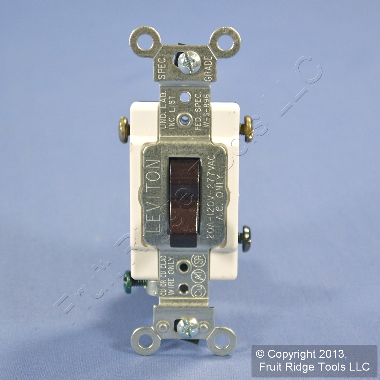 Leviton CS320-2S brown toggle switch. Commercial Specification Grade, 3-way, side-wired, grounding, rated 20A 120/277V AC. This is a heavy duty commercial switch; don't confuse it with lighter duty residential models when comparing prices. Bulk packed loose with no individual packaging. Features include:
