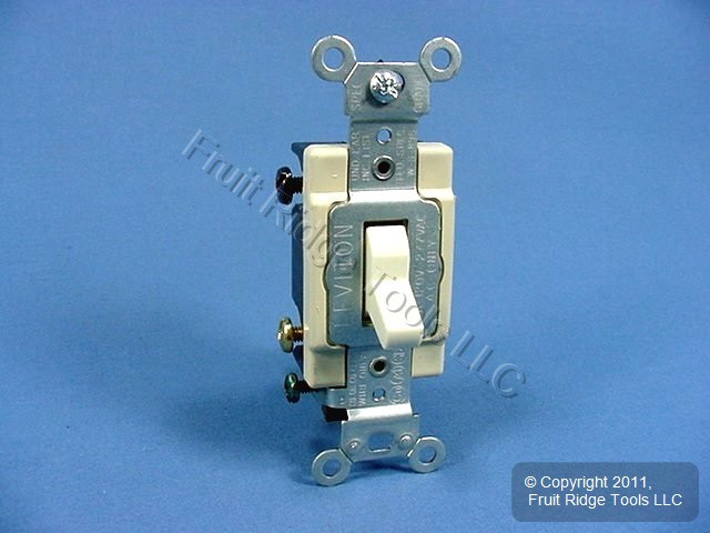 Leviton CS415-2A almond toggle switch. Commercial Specification Grade, 4-WAY, side-wired, grounding, rated 15A 120/277V AC. This is a heavy duty commercial switch; don't confuse it with lighter duty residential models when comparing prices. Bulk packed loose with no individual packaging or instructions. Features include: