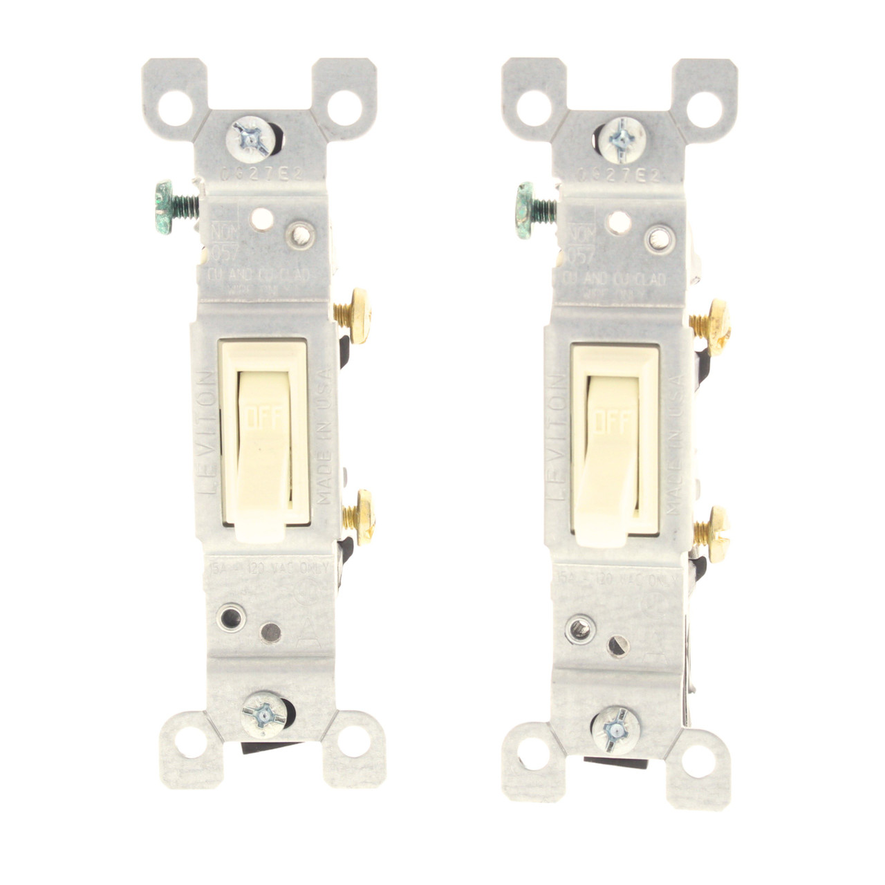 - 2 Leviton Almond Toggle Wall Light Switches Single Pole 15A 120V Bulk 1451-2A