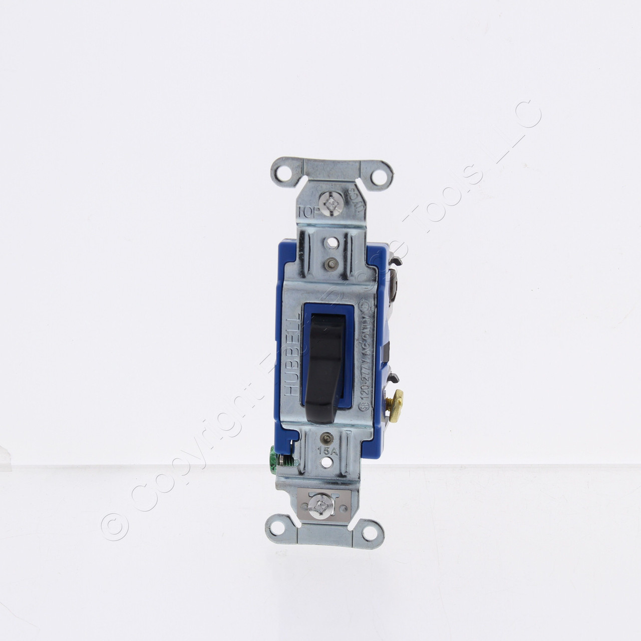 Bryant 4803BLA toggle switch. Extra Heavy Duty Industrial Specification Grade, grounding, 3-way, back and side wired, rated 15A 120/277V AC. Each is individually packaged with instructions. Features include: