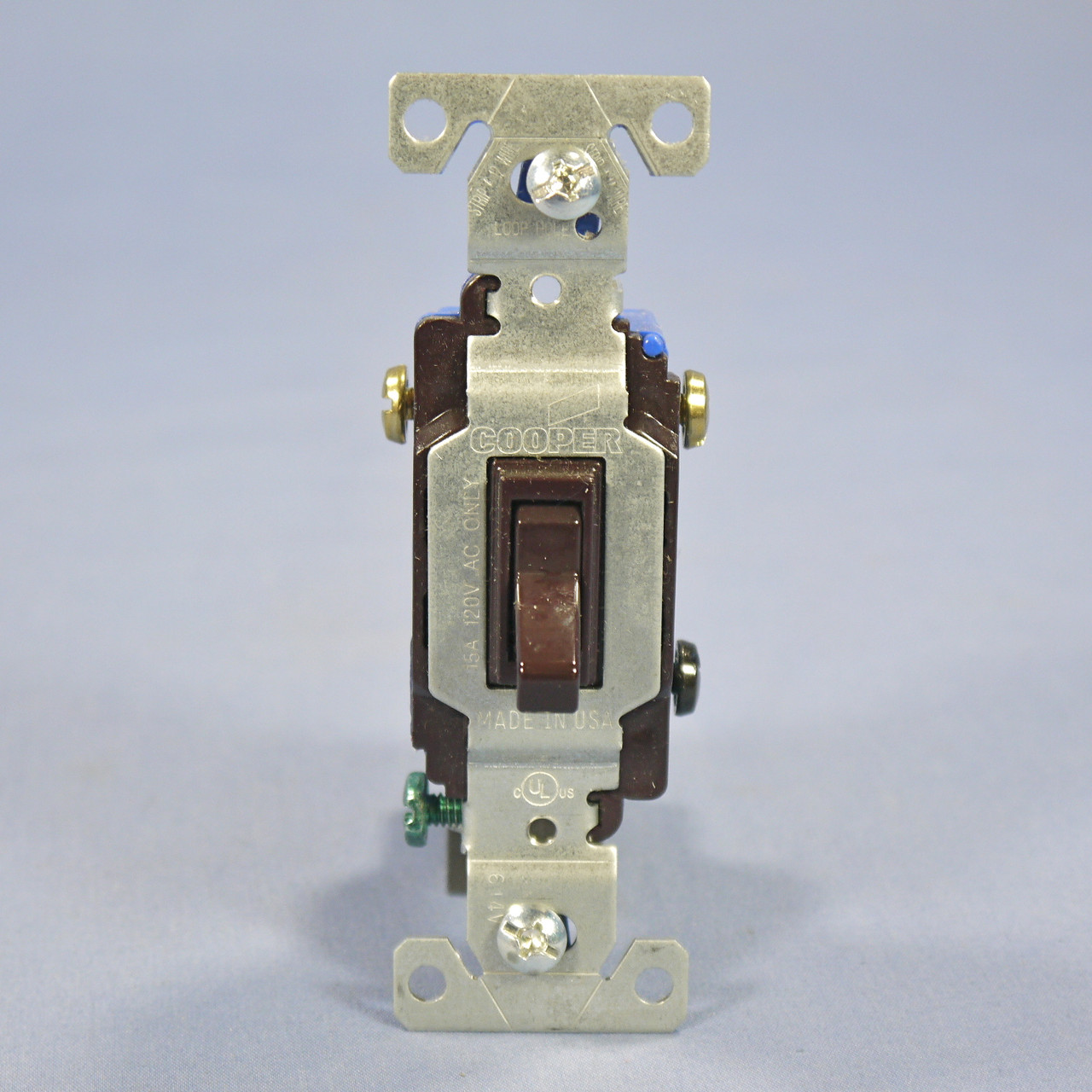Cooper Wiring Devices Brown Toggle Wall Light Switch 3-WAY Quiet 15A 120V 1303-7B Bulk