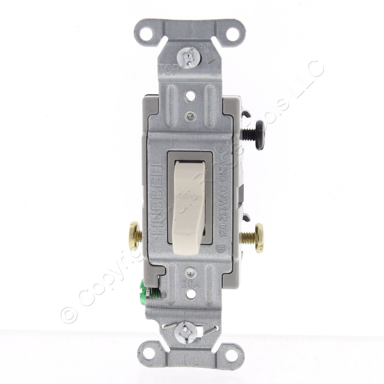 Bryant/Hubbell CS320-BLA light almond toggle switch (Bryant is a division of Hubbell). Commercial Specification Grade, 3-way, side wired, grounding, rated 20A 120/277V AC. This is a heavy duty commercial switch; don't confuse it with regular residential models when comparing prices. Designed to offer outstanding reliability and top performance in commercial settings such as: municipal facilities, government buildings, malls, department stores, hospital and health care facilities, office buildings, schools, colleges, universities, houses of worship and cultural institutions (also suitable for residential installations). Each is individually packaged; packaging may differ from photo. Features include:
