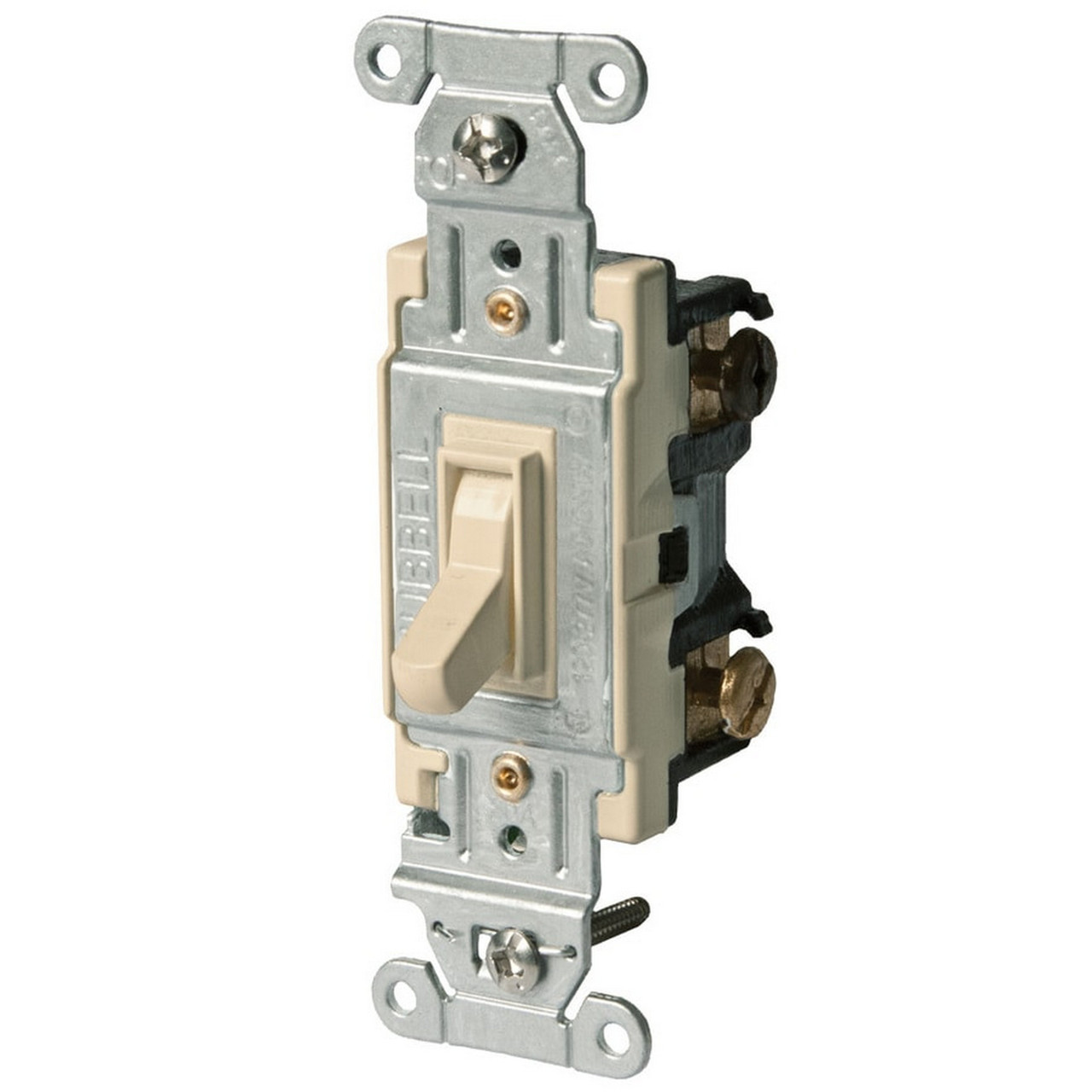 Hubbell CSB320IFZ ivory framed toggle switch. Commercial Specification Grade, 3-way, back and side wired, grounding, rated 20A 120/277V AC. This is a commercial switch; don't confuse it with regular residential models when comparing prices. Designed to offer outstanding reliability and top performance in commercial settings such as: municipal facilities, government buildings, malls, department stores, hospital and health care facilities, office buildings, schools, colleges, universities, houses of worship and cultural institutions (also suitable for residential installations). Each is individually packaged; packaging may differ from photo. Features include: