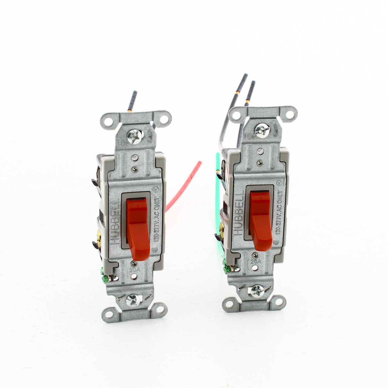 2 Hubbell CSL420R red toggle switches. Commercial Specification Grade, 4-way, back and side wired, grounding, rated 15A 120/277V AC. This is a commercial switch; don't confuse it with regular residential models when comparing prices. Designed to offer outstanding reliability and top performance in commercial settings such as: municipal facilities, government buildings, malls, department stores, hospital and health care facilities, office buildings, schools, colleges, universities, houses of worship and cultural institutions (also suitable for residential installations). Bulk packed loose with no individual packaging or instructions. Features include: