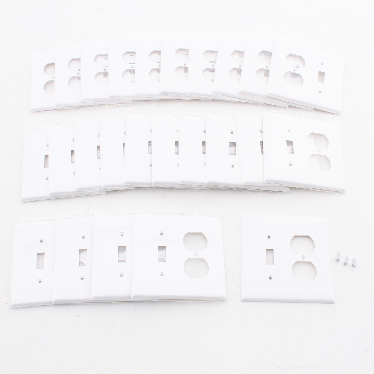 25 Mulberry UNBREAKABLE White 2-Gang Combination Toggle Plate Duplex Outlet Switchplate Wallplate 32832