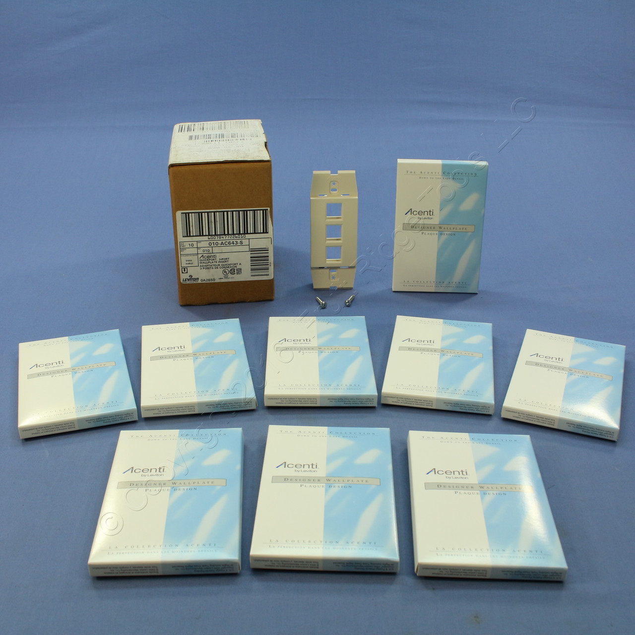 10 Leviton AC643-SND sand colored 3-port Quickport Acenti wallplate inserts. Fits neatly into an Acenti wallplate and can be combined with other Acenti devices (with a barrier box) in a multi-gang wallplate. Simply snap in the Leviton Quickport connectors (sold separately) of your choice to customize multimedia options. Fits Leviton Acenti wallplates (sold separately) - not compatible with Decora wallplates. Leviton's Acenti line has been the recipient of several design awards and represents the state of the art in electrical fixture design. Features of the Acenti line include: