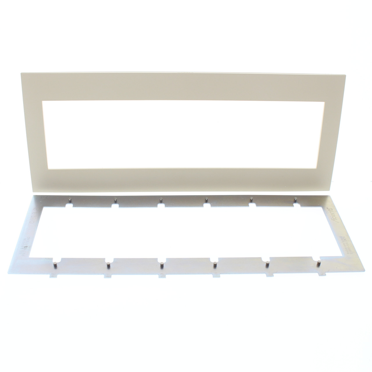 Leviton ACWP6-DFT driftwood 6-gang Acenti wallplate. Mounts using supplied aligment plate with positioning pins to ensure perfect alignment on Leviton Acenti devices (not for use with Decora type devices). Features include:
