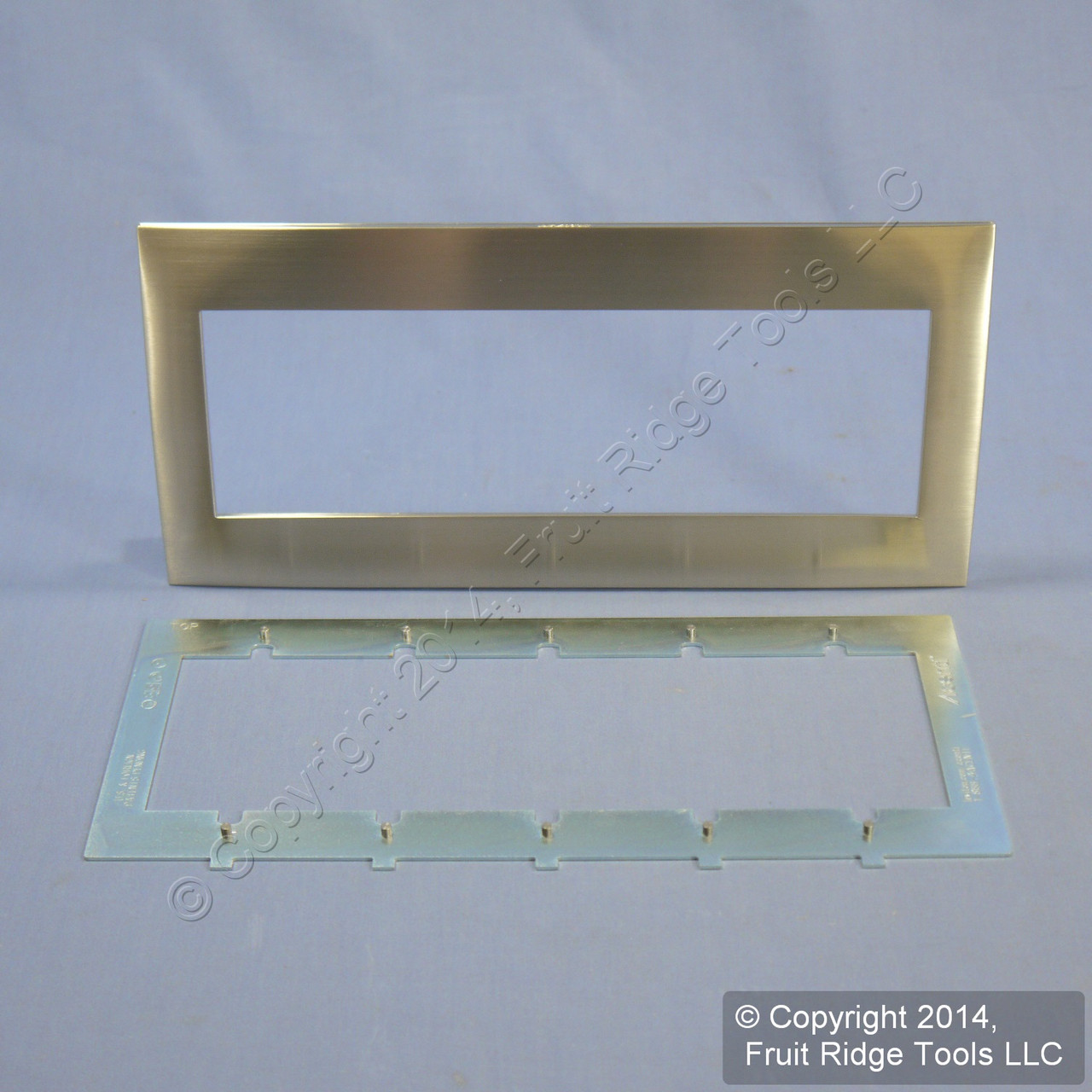 Leviton ACWM5-STS stainless steel Acenti 5-gang snap-on wallplate. Unique, screwless brushed stainless steel design coordinates well with premium-grade appliances. Mounts using supplied aligment plate with positioning pins to ensure perfect alignment on Leviton Acenti devices (not for use with Decora type devices). Features include: