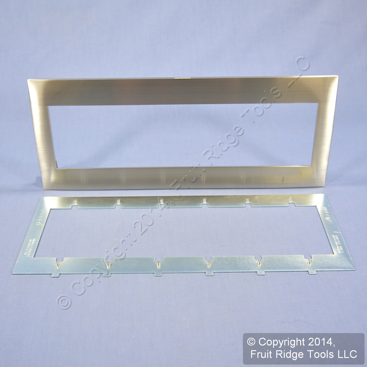 Leviton ACWM6-STS stainless steel Acenti 6-gang snap-on wallplate. Unique, screwless brushed stainless steel design coordinates well with premium-grade appliances. Mounts using supplied aligment plate with positioning pins to ensure perfect alignment on Leviton Acenti devices (not for use with Decora type devices). Features include: