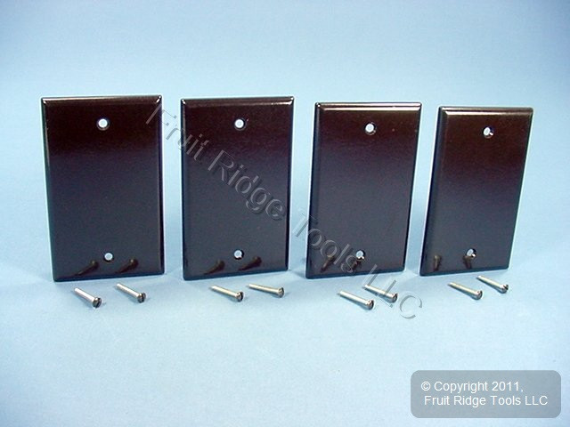 - 4 Leviton Brown 1-Gang Blank Box Mount Cover Standard Plastic Wallplates 85014