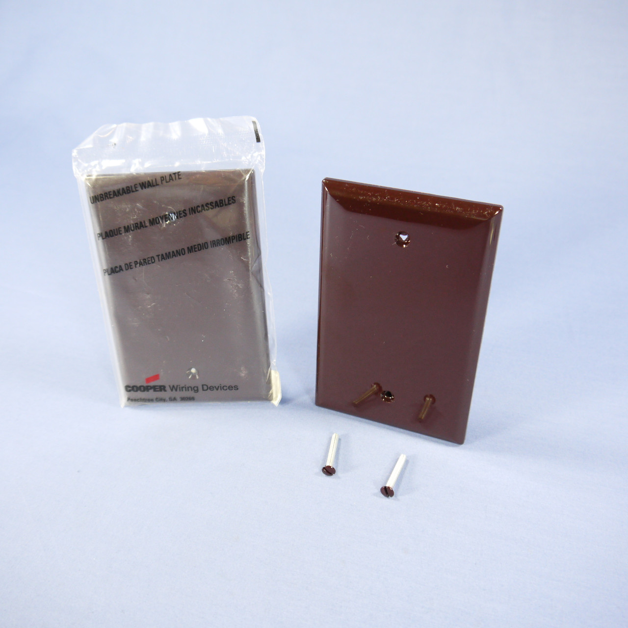 - 2 Cooper Commercial Brown Unbreakable Mid-Size 1-Gang Blank Wallplate Covers PJ13B