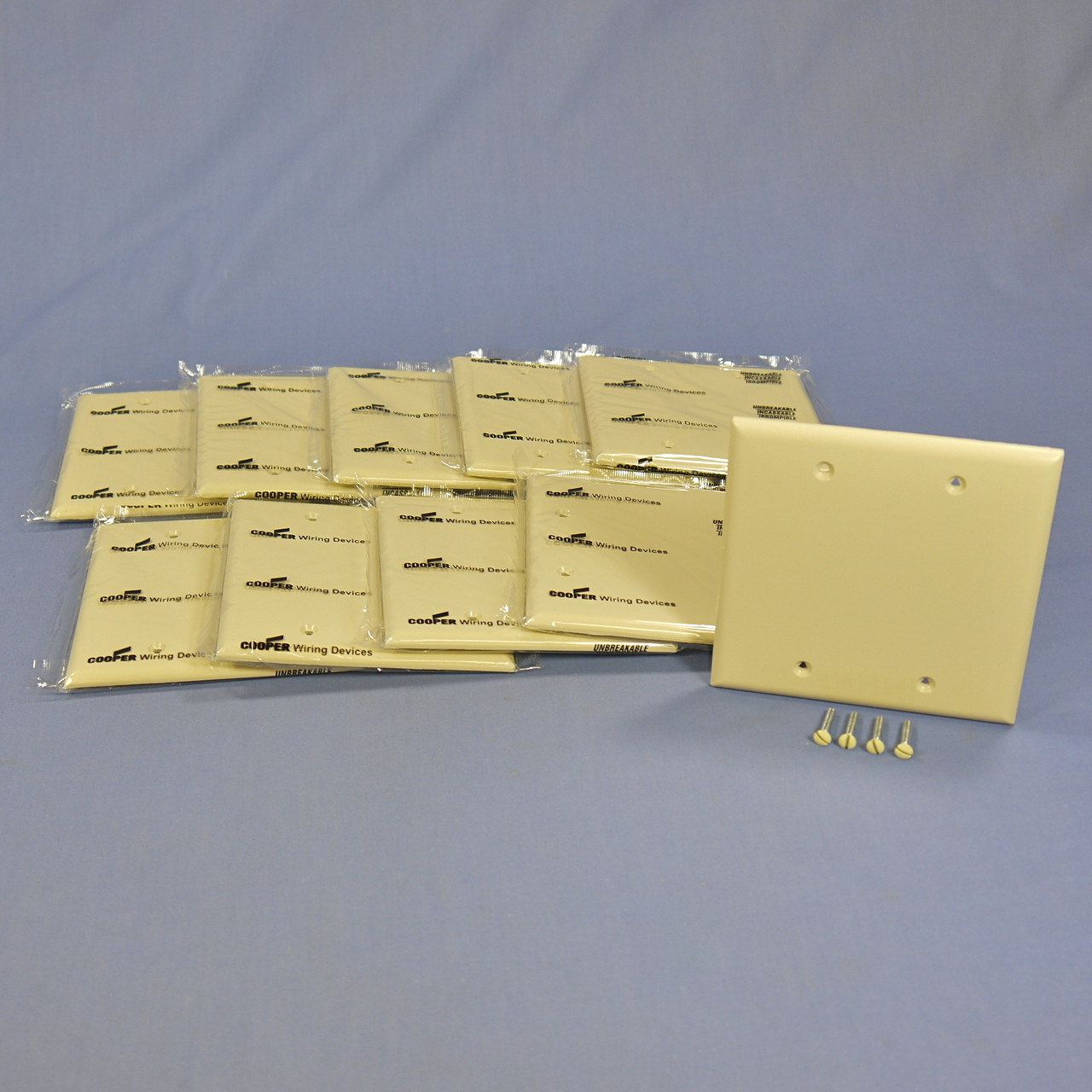 - 10 Cooper Ivory Standard 2-Gang Blank Thermoplastic Unbreakable Wallplate Covers 5137V