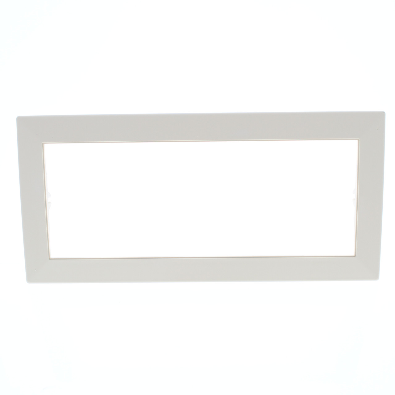 Hubbell HBLTRIM6WI Ivory 6-gang wall flange wall box cover. Residential Grade, measures 6.75"h x 13.25"w (opening measures 4.50"h x 12.10" w) with a rectangular opening that is compatible with Hubbell HBL Series recessed wall boxes and flanges. Features include: