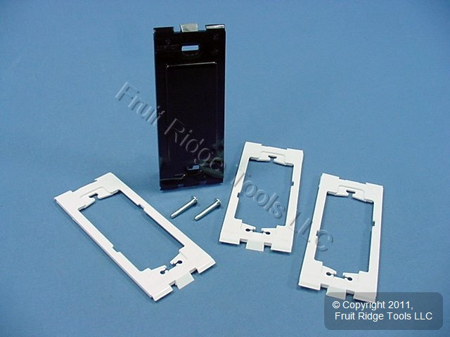 Leviton 80314-E black filler insert kit for use with Leviton screwless wallplates. Each bagged kit contains 1 blank insert and 3 mounting sub-plates. Used to fill vacant spots for further expansion, to occupy the space of a removed fixture, or to create a custom wallplate.
