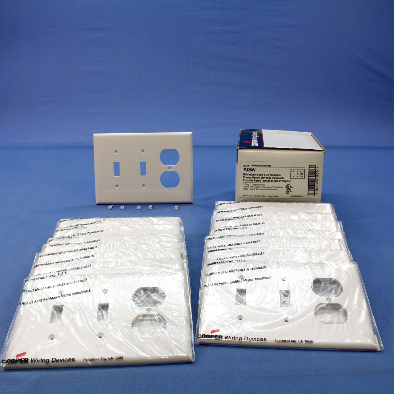 15 Cooper White UNBREAKABLE Nylon 3-Gang Mid-Size Receptacle Switch Wallplates PJ28W