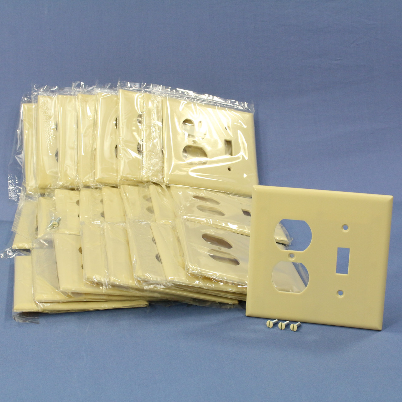 25 Cooper Mid-Size Ivory 2-Gang Combination Switch Receptacle Wallplate Outlet Covers 2038V