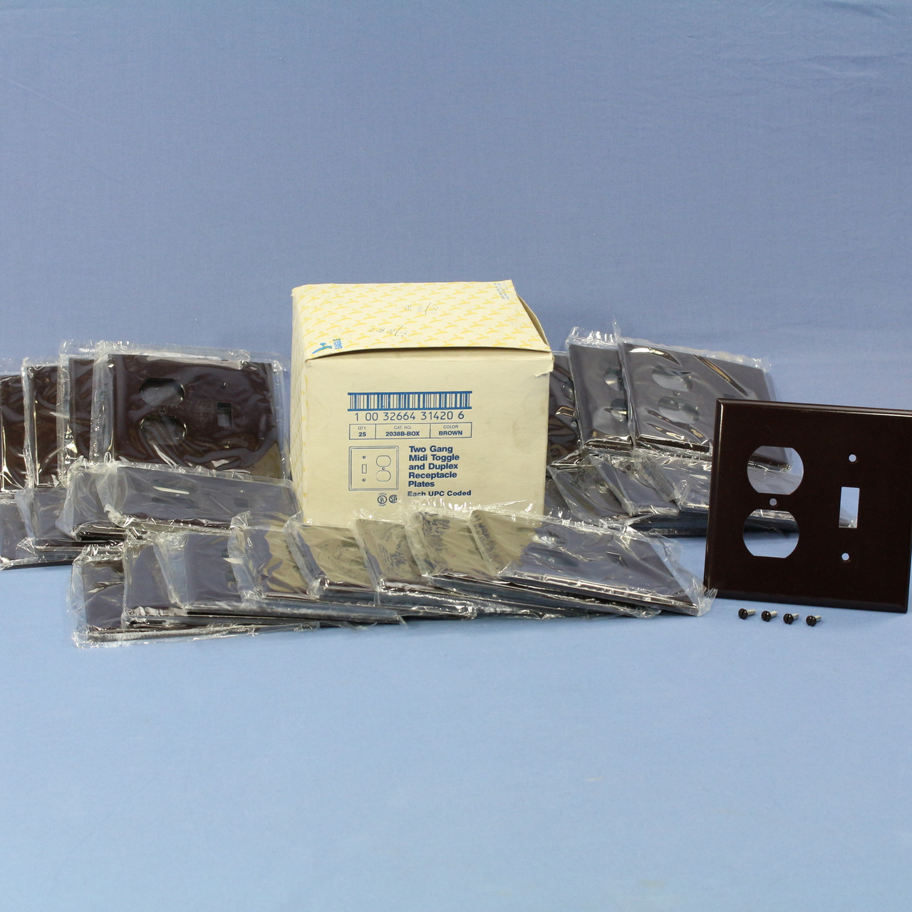 - 25 Eagle Mid-Size Brown 2-Gang Combination Switch Receptacle Wallplate Outlet Covers 2038B