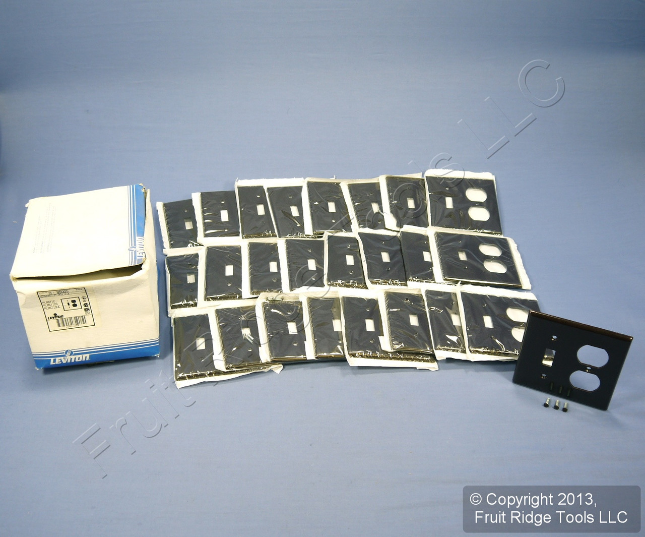 25 Leviton 85005 brown 2-gang wallplates. Residential grade, standard size plate with one switch and one duplex receptacle opening. Features include: