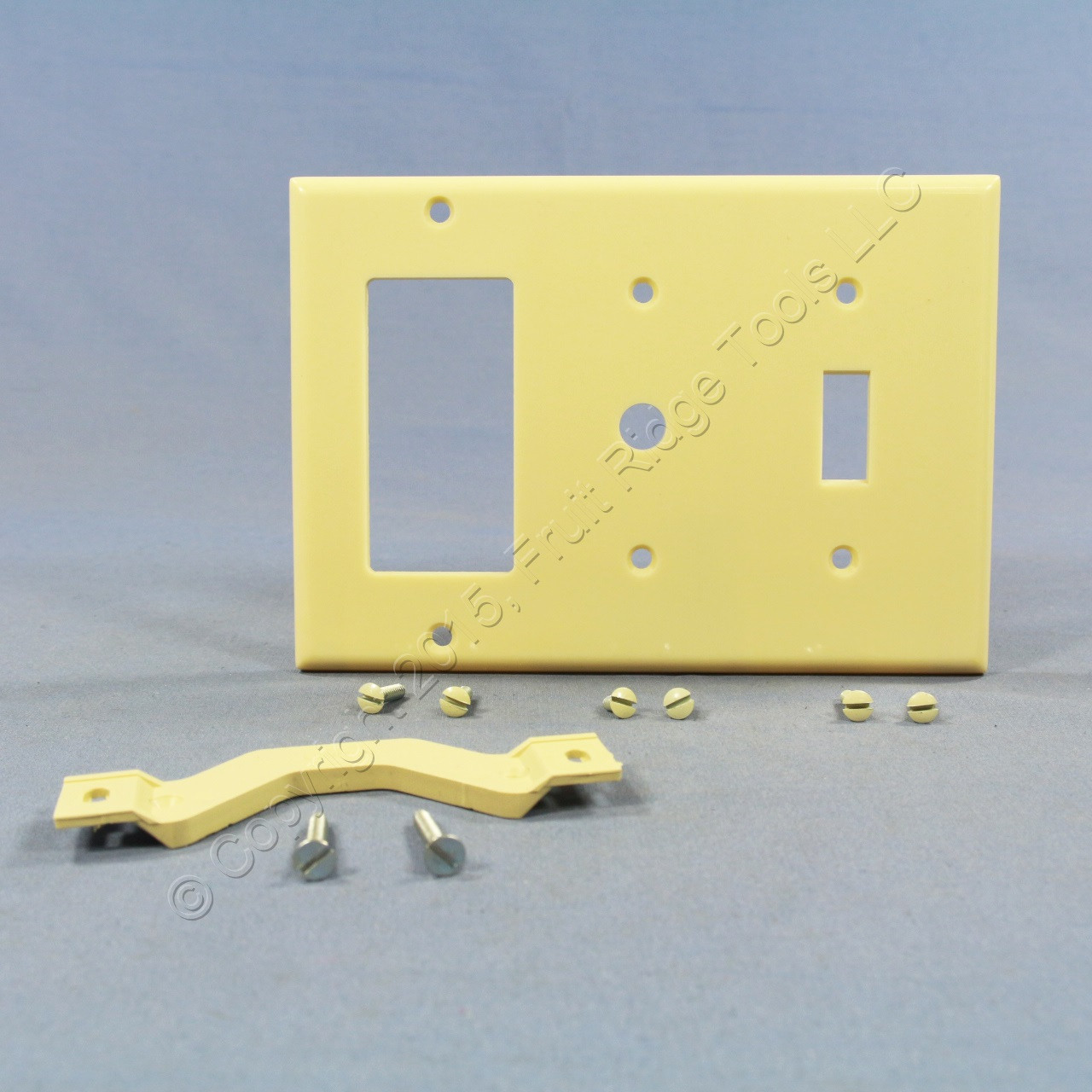 - Leviton Ivory 3-Gang Combination Decora Toggle Phone Cable Wallplate Cover GFI GFCI 80442-I