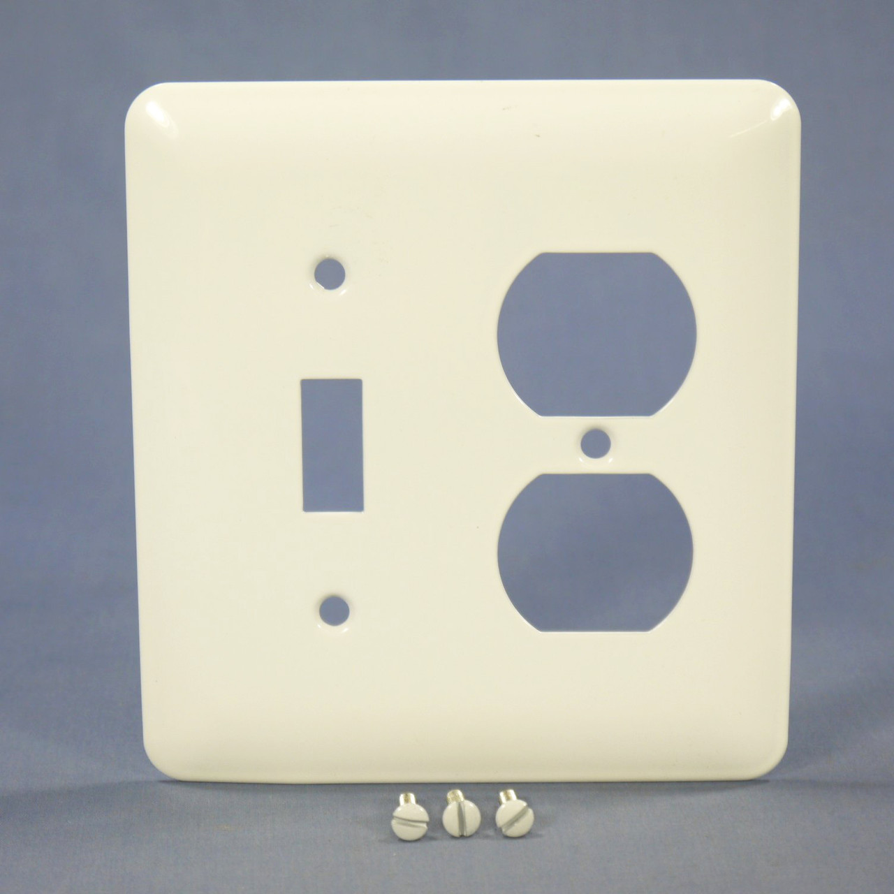 - Mulberry Princess 2-Gang White Semi-Gloss Metal Combination Toggle Switch Outlet Cover Receptacle Wallplate 76532