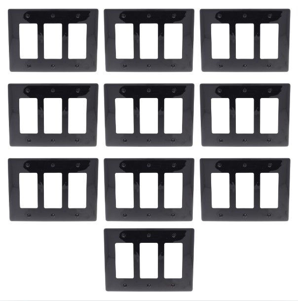 - 10 Hubbell Black 3-Gang Nylon Decorator/Rocker Cover Mid-Size Wallplates NPJ263BK