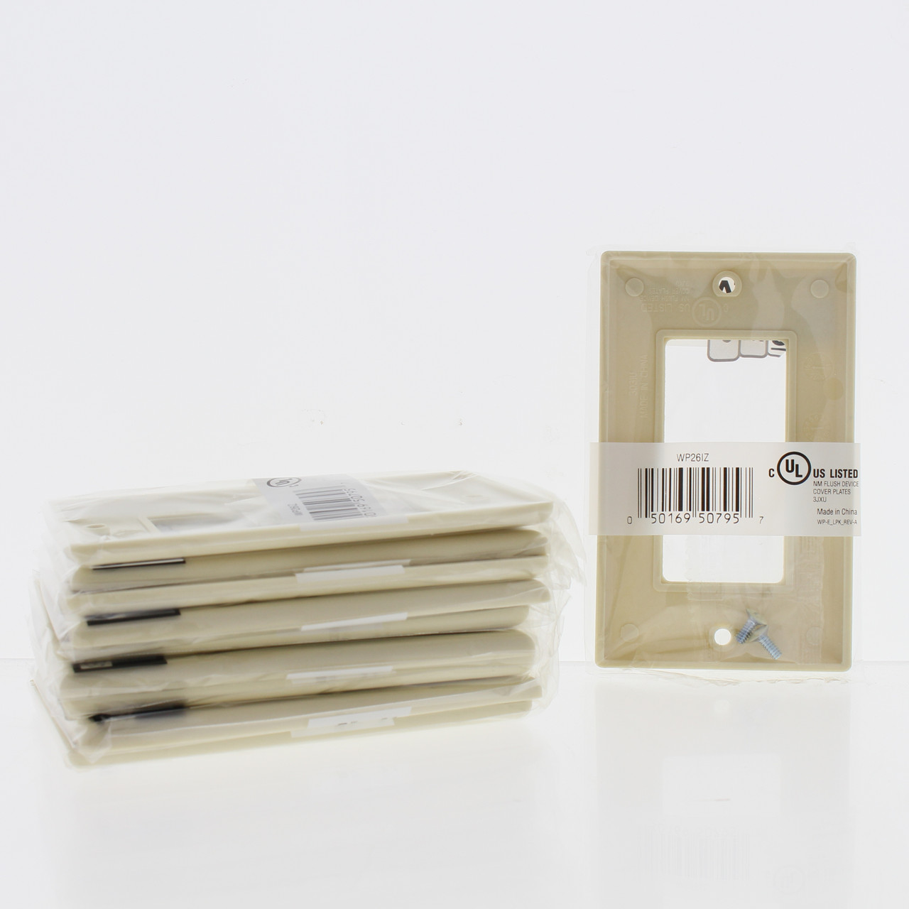 10 Hubbell WP26I ivory 1-gang Decorator wallplates. Residential Grade, standard size (4.5"h x 2.75"w) wallplate with one standard rectangular opening for Decorator, GFCI or Rocker device. Features include: