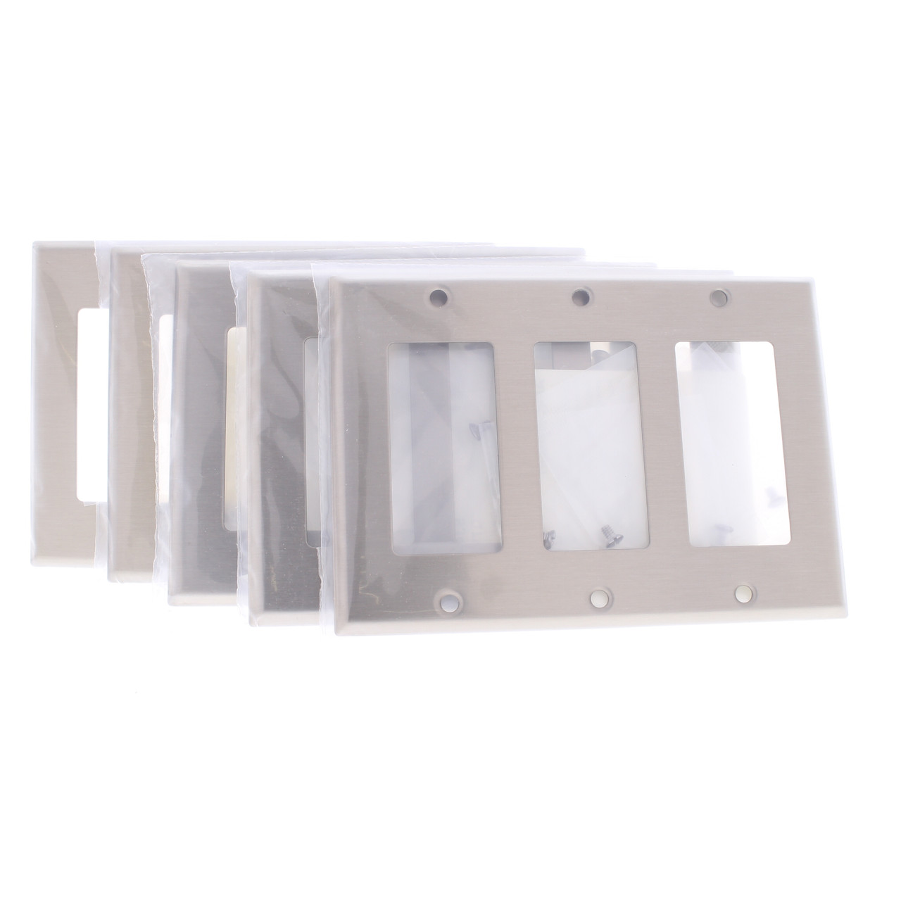 - 5 Cooper ANTIMICROBIAL 3-Gang Stainless Steel Decorator Wallplates Cover GFCI GFI
