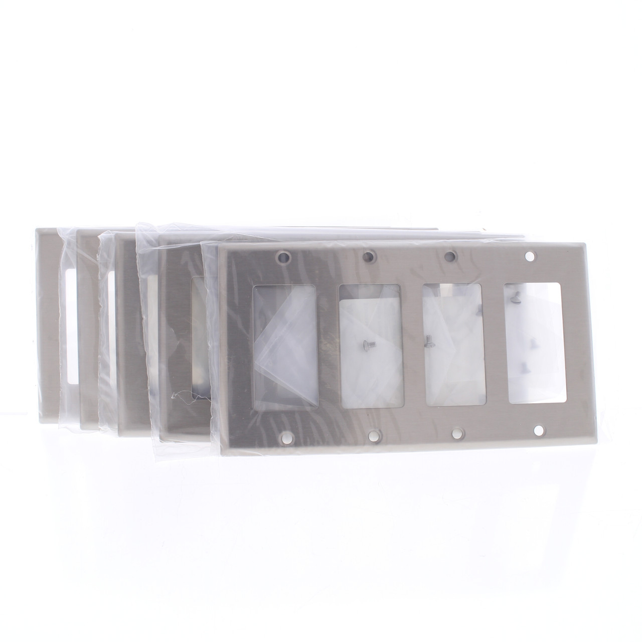 - 5 Cooper ANTIMICROBIAL 4-Gang Stainless Steel Decorator Wallplates Cover GFCI GFI