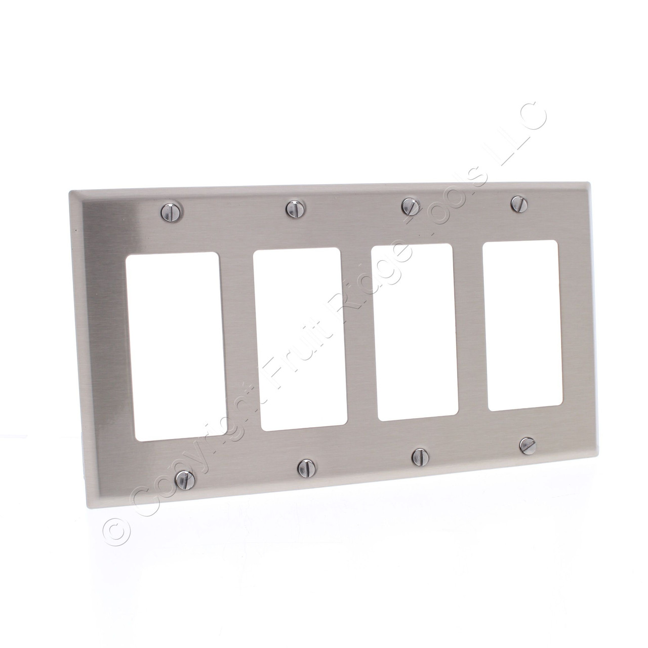 - Cooper ANTIMICROBIAL 4-Gang Stainless Steel Decorator Wallplate Cover GFCI GFI 93404AM